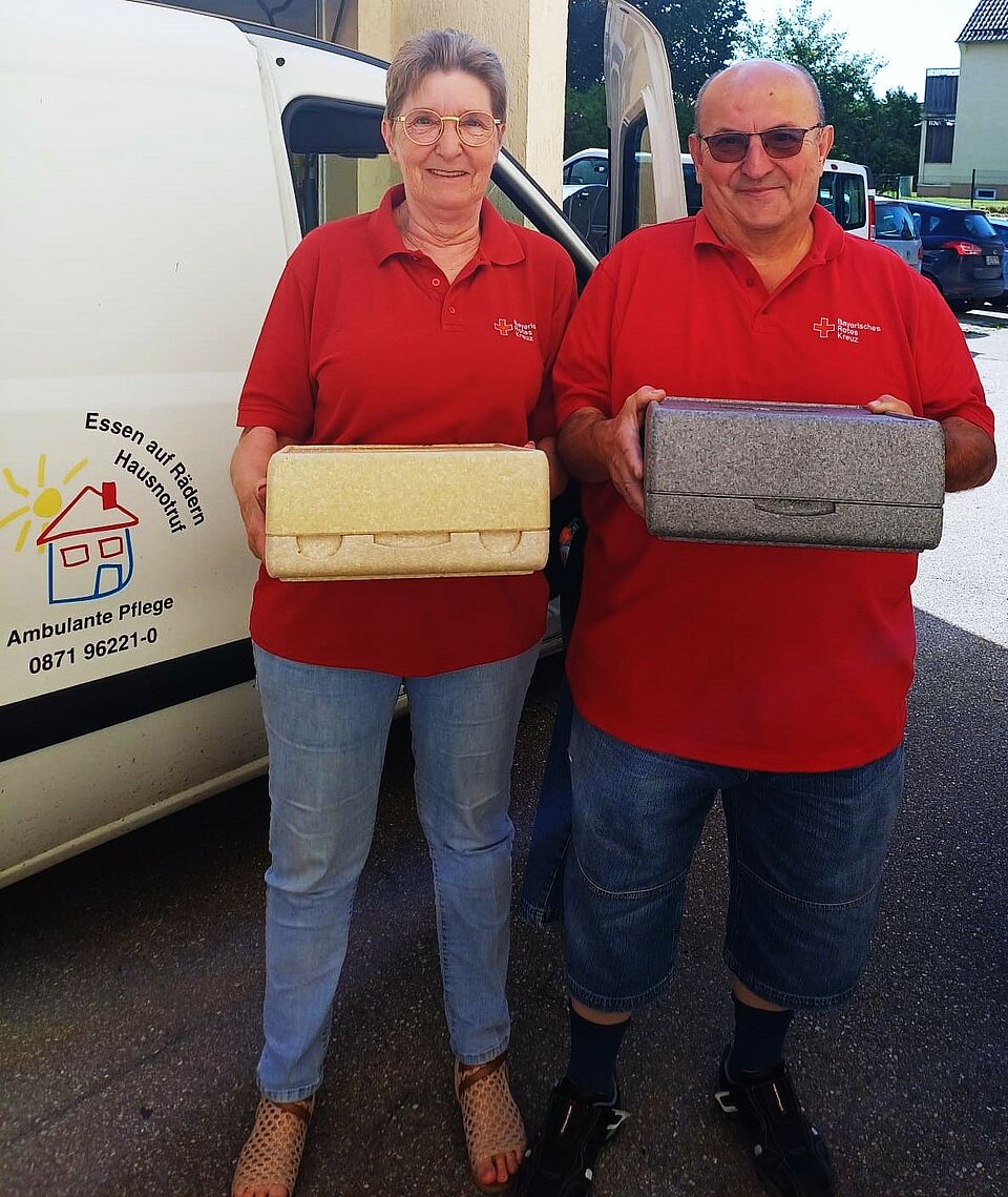 Der Essen auf Rädern-Dienst des BRK Landshut beliefert wöchentlich 200 Menschen mit warmen Mahlzeiten. Auch an den Wochenenden sind es bis zu 170 Essen, die zuverlässig und pünktlich geliefert werden. „Die Hauptzielgruppe ist über 80, unsere älteste Kundin 103 Jahre alt", erklärt Dagmar Vilser, die Leitung des „Essen auf Rädern"- Teams beim BRK Kreisverband Landshut. „Wir liefern mit zwei Touren: Von Velden über Bodenkirchen nach Vilsbiburg und von Velden über Haarbach bis nach Geisenhausen."