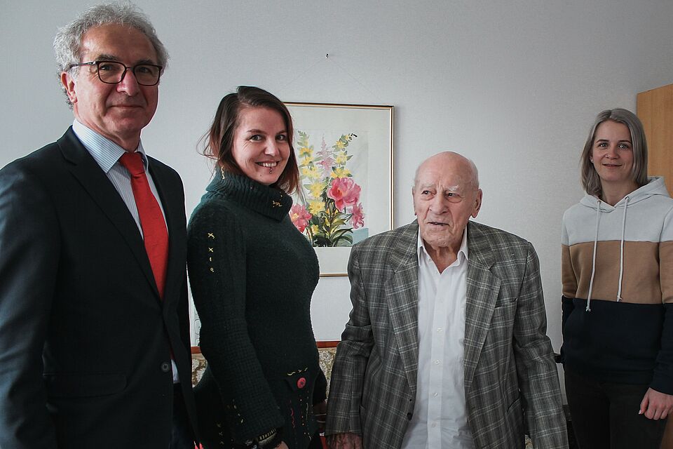 Einzig das Hören fällt Herrn Bitzer immer schwerer, ansonsten erfreut sich das Geburtstagskind bester Gesundheit. Die Tageszeitung liest er ohne Brille und zum Gehen braucht er lediglich einen Rollator.