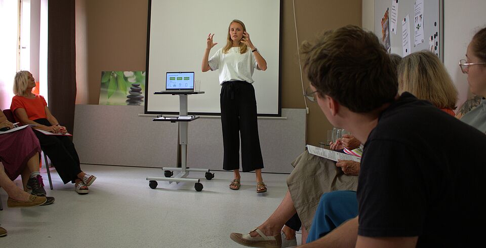 Die praxisnahe Herangehensweise zieht sich durch den gesamten Kurs. Zwei Teilnehmerinnen spielen eine reale Krisensituation nach: Eine Person ist verzweifelt, die andere weiß nicht, wie sie helfen kann. „Wie in der körperlichen Ersten Hilfe“, betont Rausch, „geht es auch hier darum, Ruhe zu bewahren, die Lage zu überblicken und sich selbst nicht zu gefährden.“