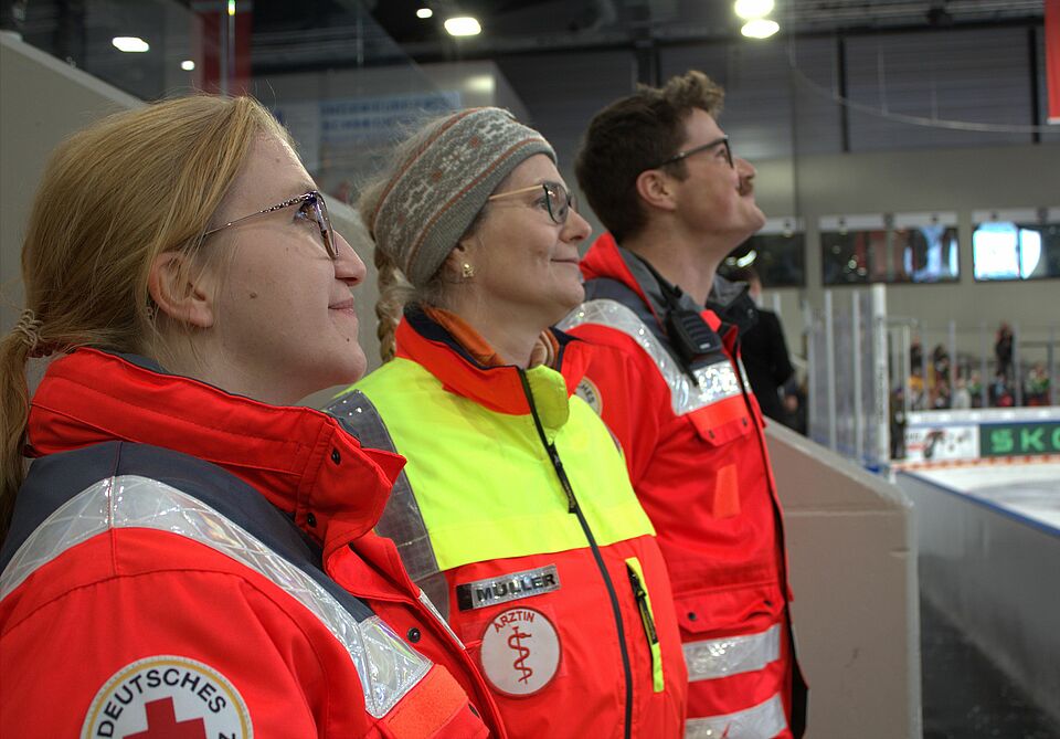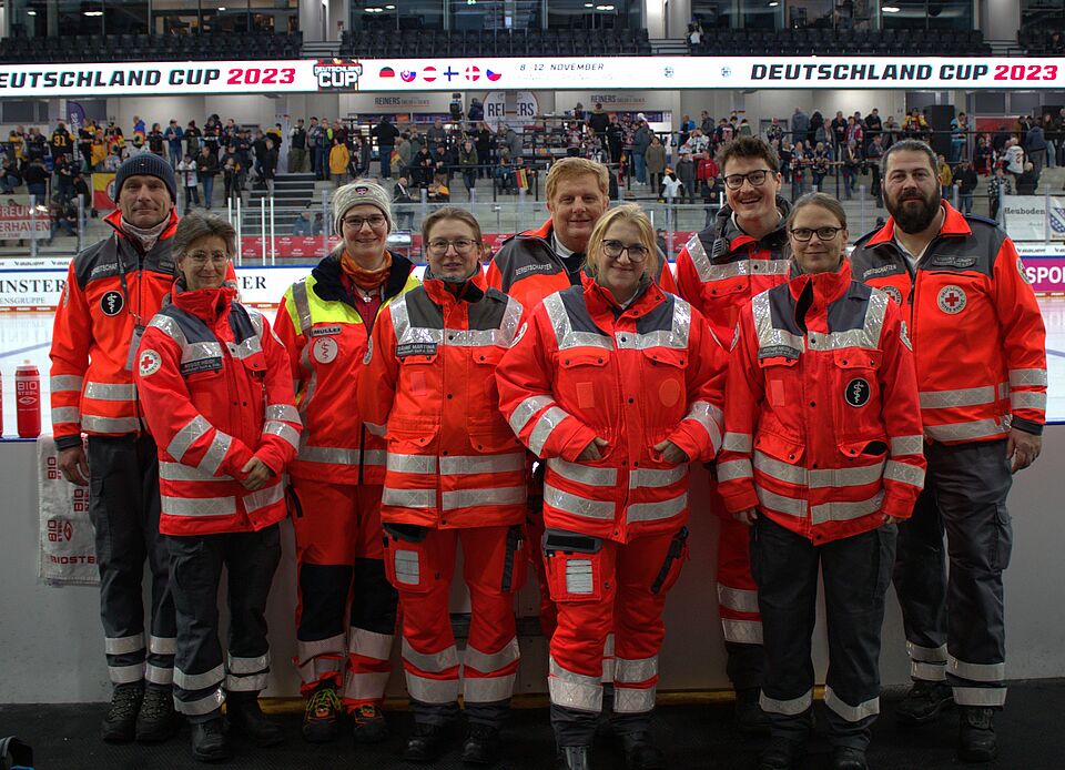 Der Deutschland Cup ist der Höhepunkt der Saison 2023/24. Erstmals werden Frauen- und Herren-Nationalteams parallel in einem Stadion ihre Turniere austragen. Zwei Wettbewerbe mit acht Mannschaften. Dafür ist das Team des BRK schon seit Montag im Einsatz. Die Sanitäter sind bei den Nationalmannschaften auch für die medizinische Versorgung während der Trainings verantwortlich.
