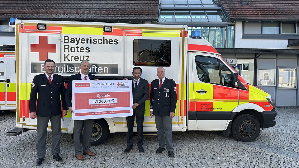 Landshut – Die ehrenamtlichen Helferinnen und Helfer der Bereitschaften im BRK Kreisverband Landshut freuen sich über eine großzügige Spende in Höhe von 1.700 Euro. Überreicht wurde der symbolische Spendenscheck von Rechtsanwalt Stefan Haas, der selbst aktives Mitglied der Bereitschaften ist. Die Zuwendung stammt von der Regensburger Kanzlei Wagner & Lehner Rechtsanwälte, die auch einen Sitz in Landshut unterhält.
