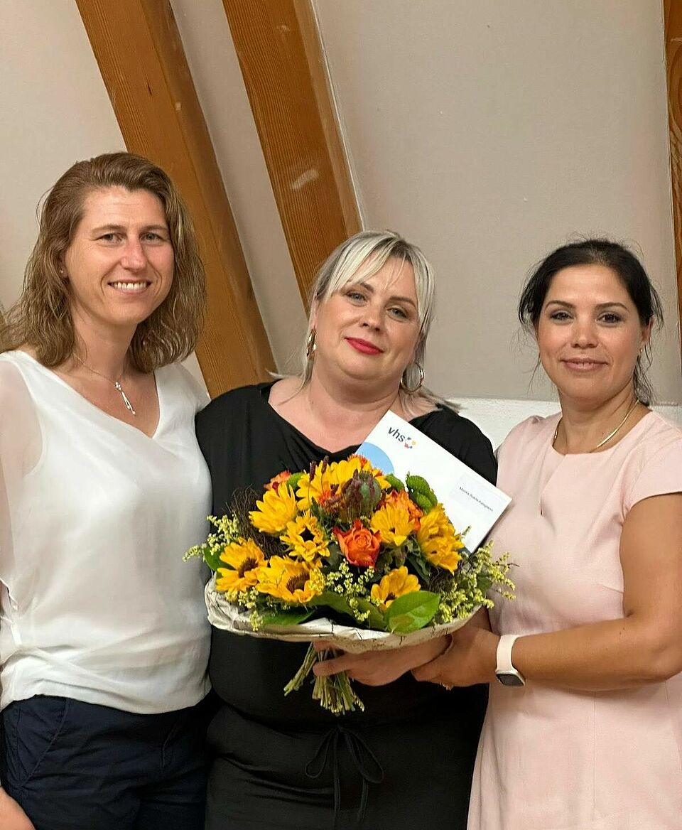 Frau Luljeta Kukaj, die Leitung unserer Ambulanten Pflege, gratulierte zum Abschluss und ist stolz darauf, dass Frau Kalogianni auch in Zukunft zum Team der Ambulante Pflege gehört.