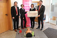 Die Sparkasse Landshut unterstützt die Wasserwacht Geisenhausen mit einer Spende von 400€ - das Geld soll in die Erweiterung einer Reanimationspuppe fließen.